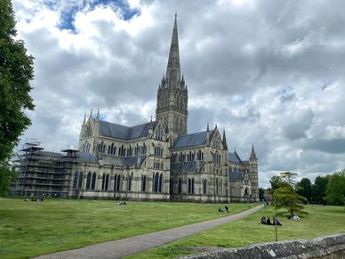 WELL, SPEAKING OF BLESSINGS, A GOOD FOLLOW WAS THE SALISBURY CATHEDRAL WHICH IS ABOUT 20 MINUTES DOWN THE ROAD FROM STONEHENGE.