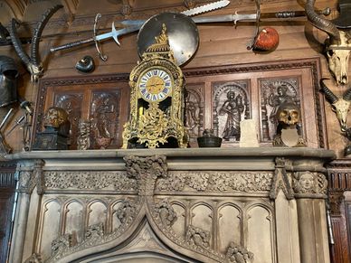 On the left of the mantel is the skull of William the Bruce, Braveheart. On the right the skull of a poor soldier. Scott always tried to balance everything.