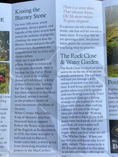 Castles, castles everywhere you turn. So it seemed, Here we just stopped on the road along the 4 hour ride to reach Blarney castle where we had theopportunity to smooch that famous stone adn get the gift of gab. For me, I have been thinking of it a s booster shot.