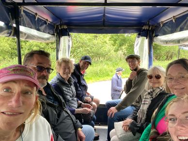 The last day was taking us to the Cliffs of Moher, where it was poring rain when we arrived. Some of the group went out and the rain let up and said is wonderful I was burnt and stayed inthe bus.. and then another 4 hours to the hotel at the airport in Dublin and a big wonderful group dinner before we all get early starts to the planes in the morning.