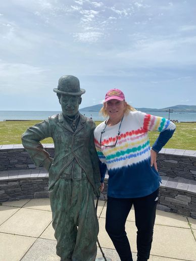 On the road back we learned that Charlei Chaplin loved Kerry and often visited and lived there. We found a statue in his honor So, here is the required selfie,